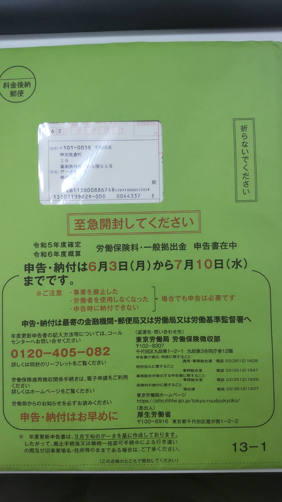5月は年度更新更新の下記のような緑の封筒が届き、